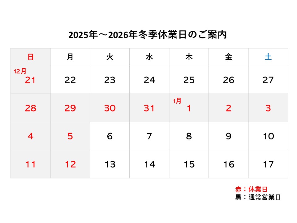 年始は1月6日(火)からとなりますのでご注意くださいませ。